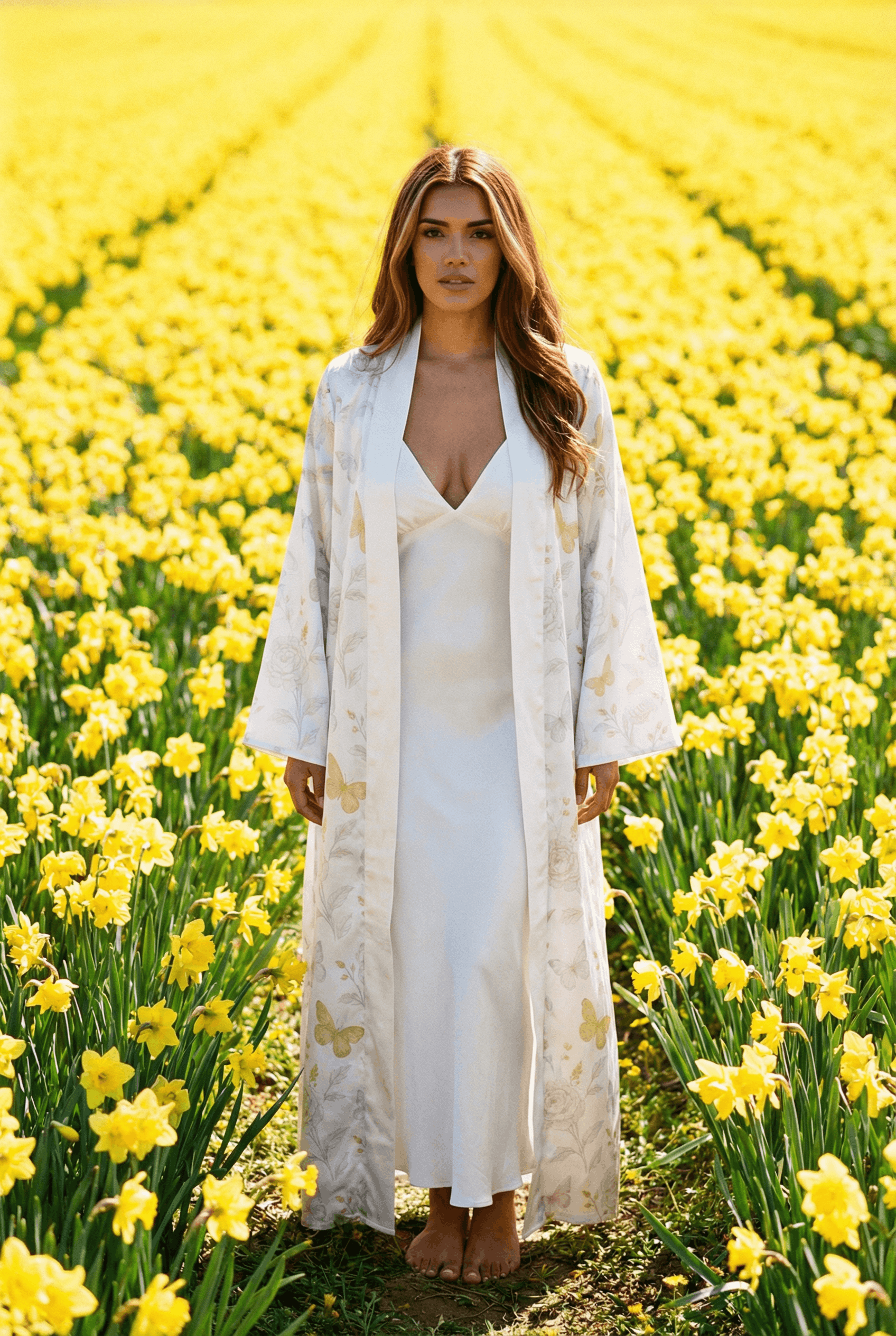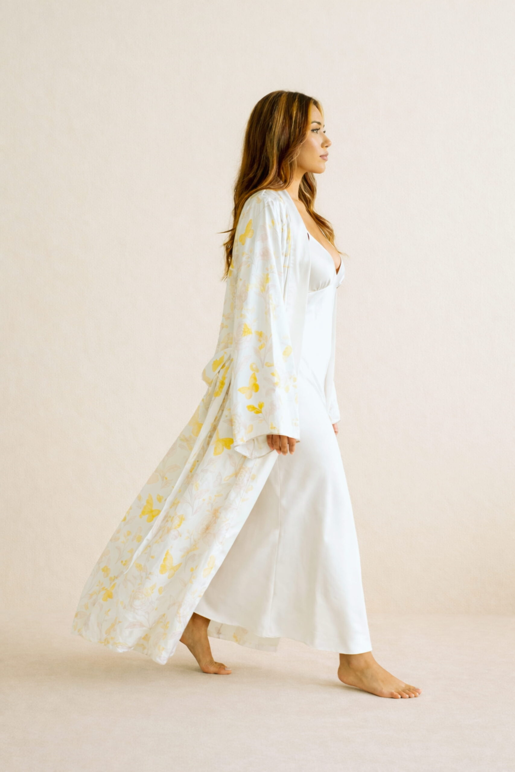 Decadent. Romantic. Fiercely feminine. The Robe is a statement in full bloom— designed for the woman who turns every day into a celebration of self. Crafted from buttery 100% silk, this robe features rich burgundy florals cascading across a warm champagne backdrop, finished with French lace cuffs and hem for a touch of old-world glamour. Whether you’re sipping wine in a sunlit courtyard or sinking into your evening ritual, this robe brings grace and power to your presence.